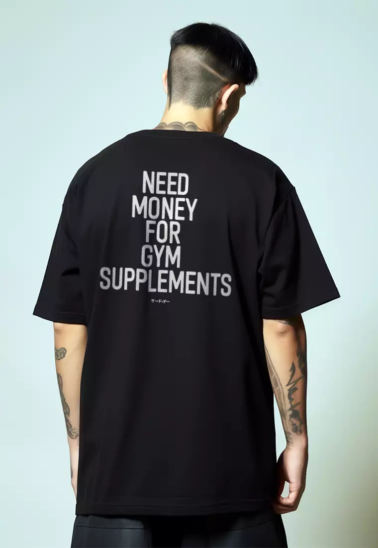 MTT42 Kaos Oversize Gym Scuba Bahan Tebal "need money supplements" hitam black