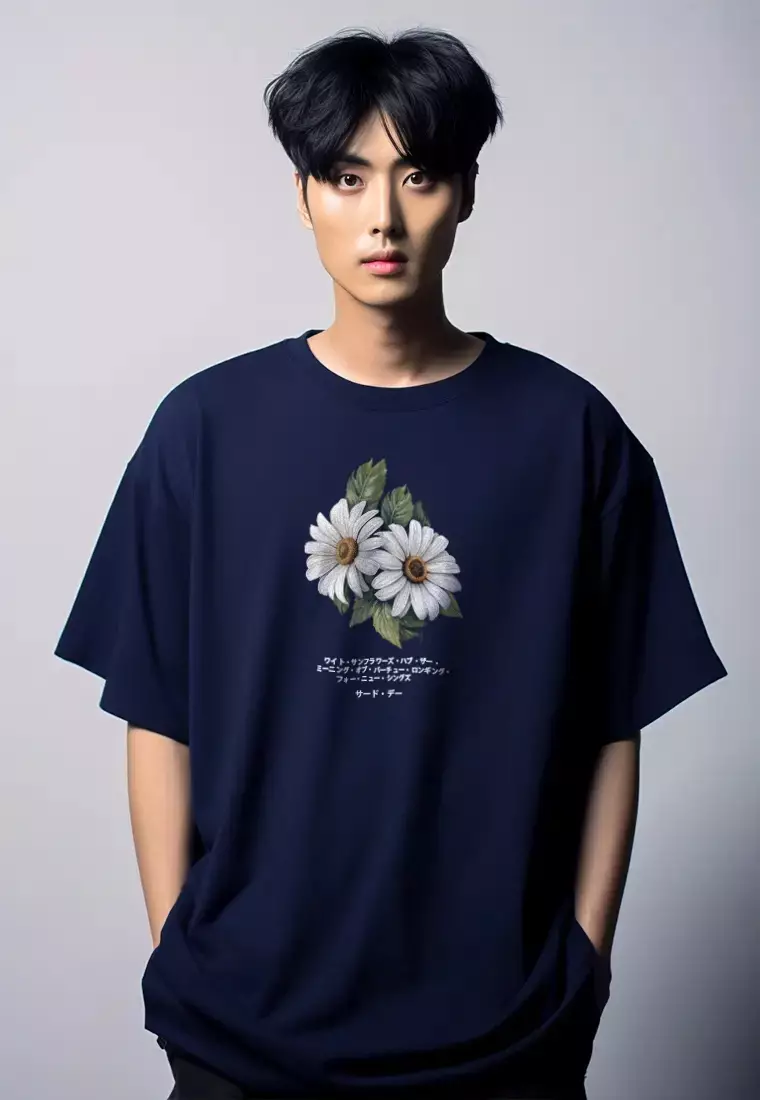 Third DayMTT60 Kaos gambar bunga oversize scuba "two daisies" navy400000.00160000.00