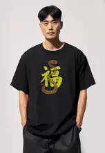 MTT71 Kaos Oversize Imlek Tahun Ular Bahan Tebal "fu snake" hitam