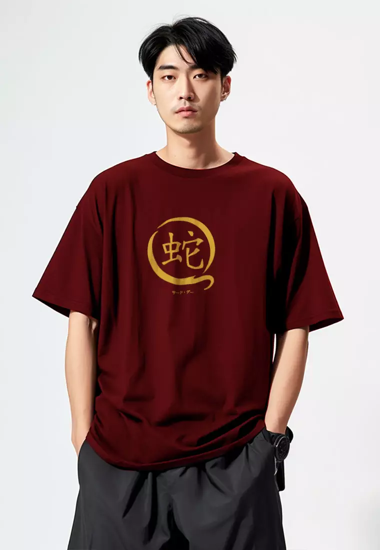 MTT80 Kaos Imlek 2025 Oversize Scuba Hitam Bahan Tebal "snake in chinese" merah maroon