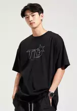 MTU10 Kaos Oversized Estetik Logo TD Bintang Star hitam