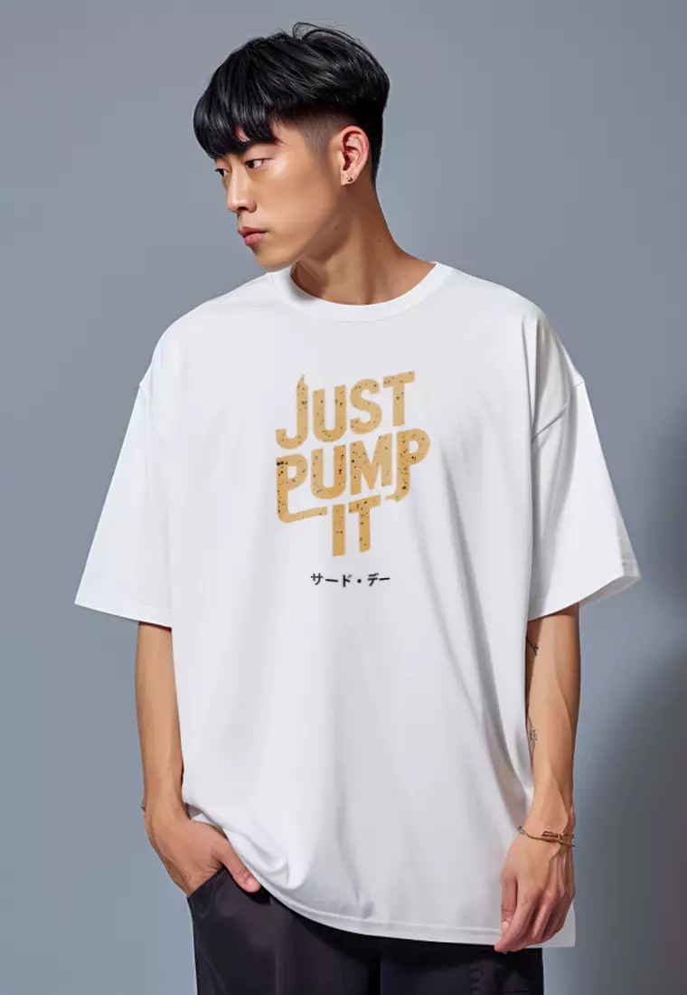 MTU49 Kaos Oversize Gym Bahan Tebal Scuba "just pump it" putih
