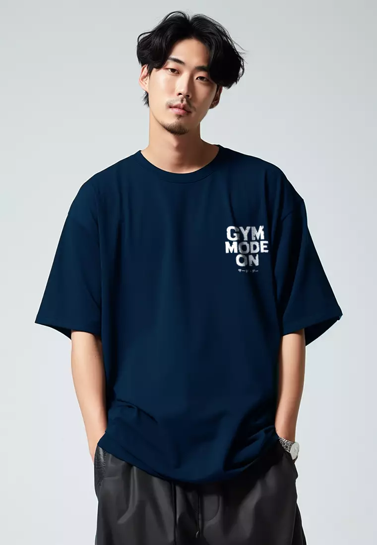 MTU61 Kaos Oversize Gym Bahan Tebal "gym mode on" navy