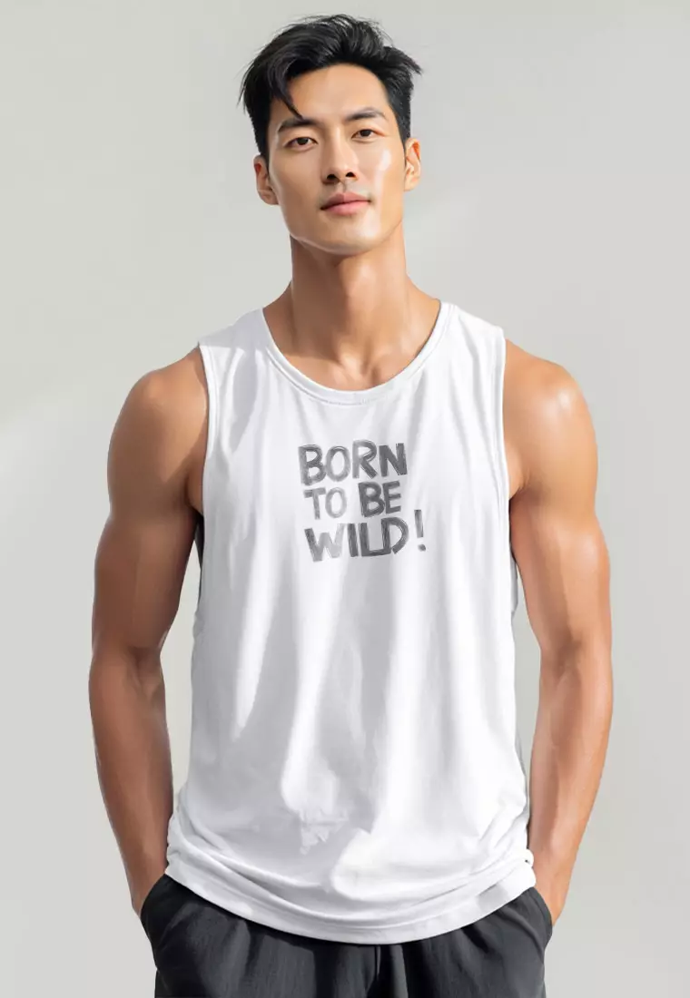 MTU78 Kaos Lekbong Singlet Pria "born to be wild" putih