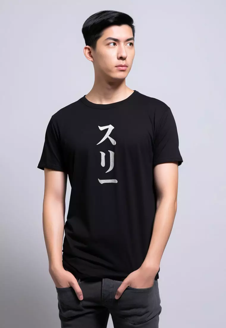 MTV51 Kaos Lengan Pendek Tulisan Jepang "3 katakana" hitam
