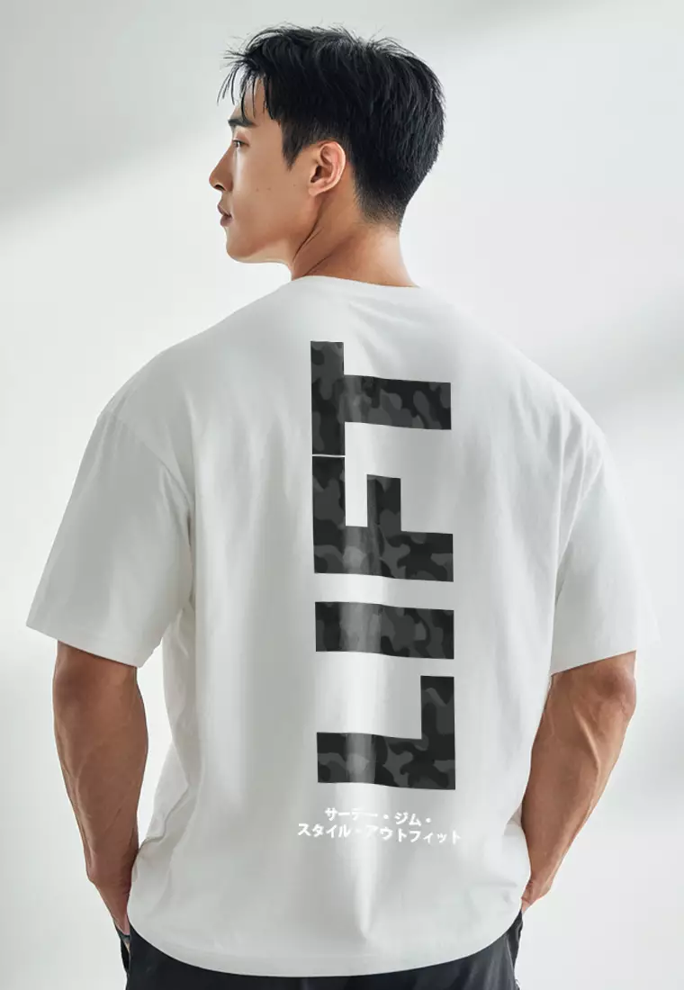 MTV83 Kaos Oversize Gym Pria Bahan Tebal LIFT Putih