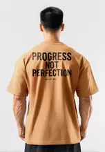 MTW11 Kaos Oversize Gym Bahan Scuba Tebal Scubalux "progress not perfection" khaki