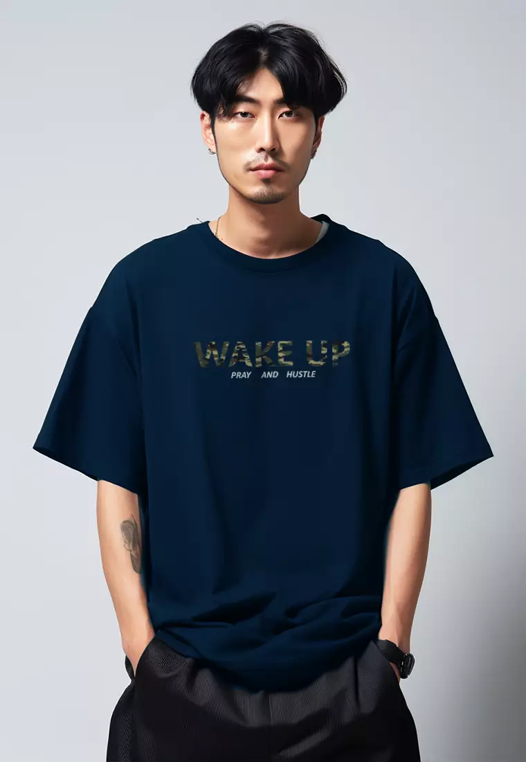 MTW57 Kaos Oversize Aesthetic Bahan Tebal "wake up" navy