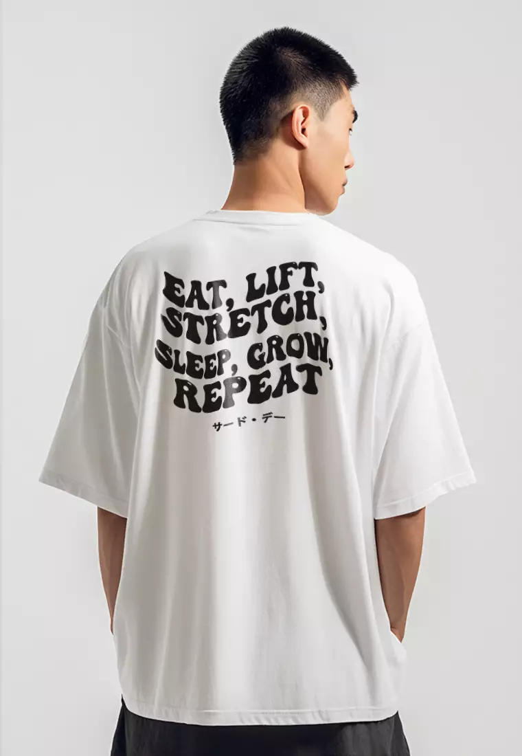 MTX08 Kaos Oversize Gym Scubalux "eat lift stretch" putih