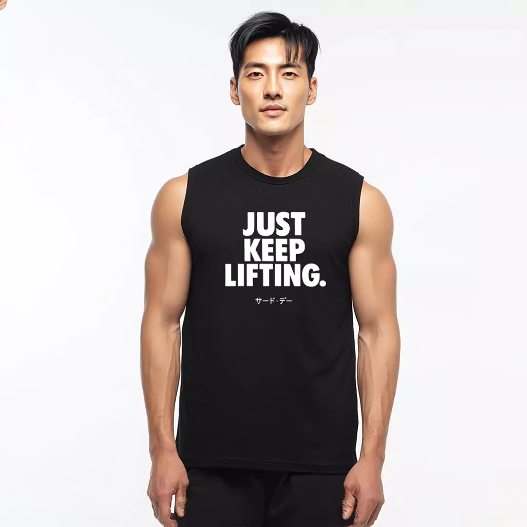 MTX48 Kaos Sleeveless Pria Tema Gym "just keep lifting" instacool SVN hitam