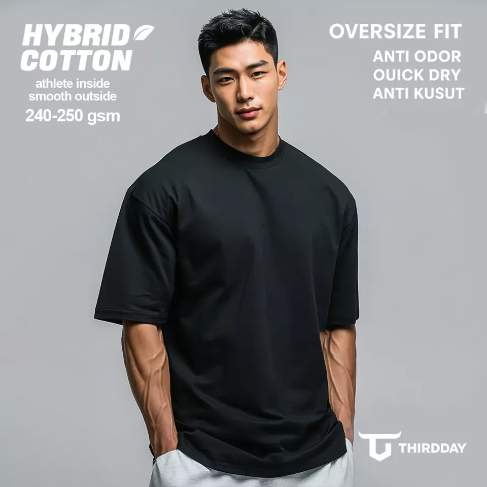 MTX58 Kaos Oversize Gym Tebal 250gsm Hybrid Cotton Polos Hitam Third Day