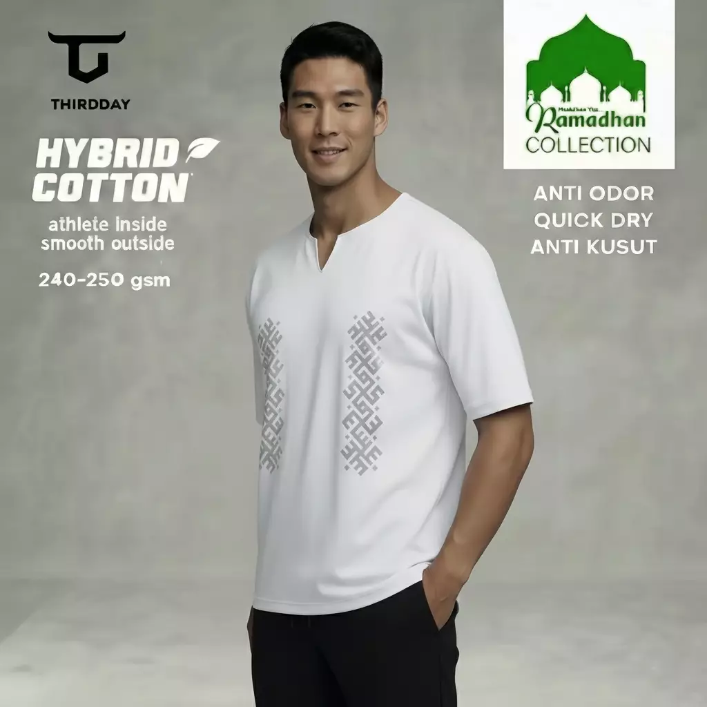 THIRDDAY Baju Koko Oversize Pria "ornament print" Cotton Hybrid 240gsm putih MTZ24