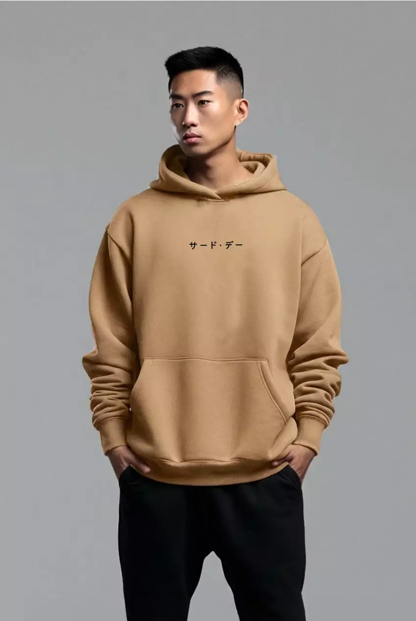 THIRDDAY Hoodie Pria Premium ScubaLux Gak Panas "katakana aja" khaki MOB31