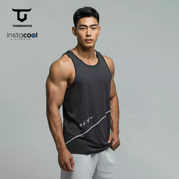 Third DayTHIRDDAY Kaos Kutung Singlet Tank Top Gym instacool "diag cut katakana" SVN Abu MTY68350000.00125000.00