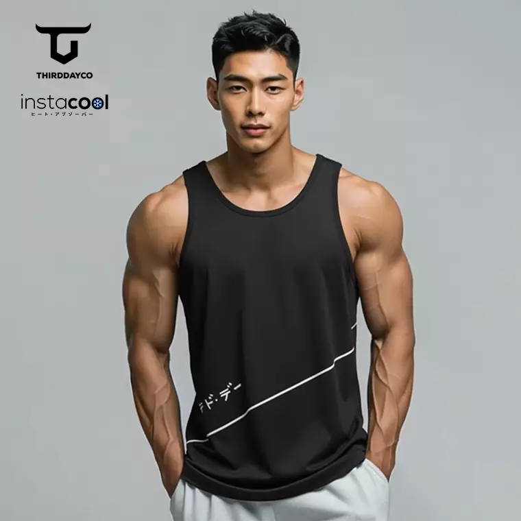 THIRDDAY Kaos Kutung Singlet Tank Top Gym instacool "diag cut katakana" SVN hitam MTY33