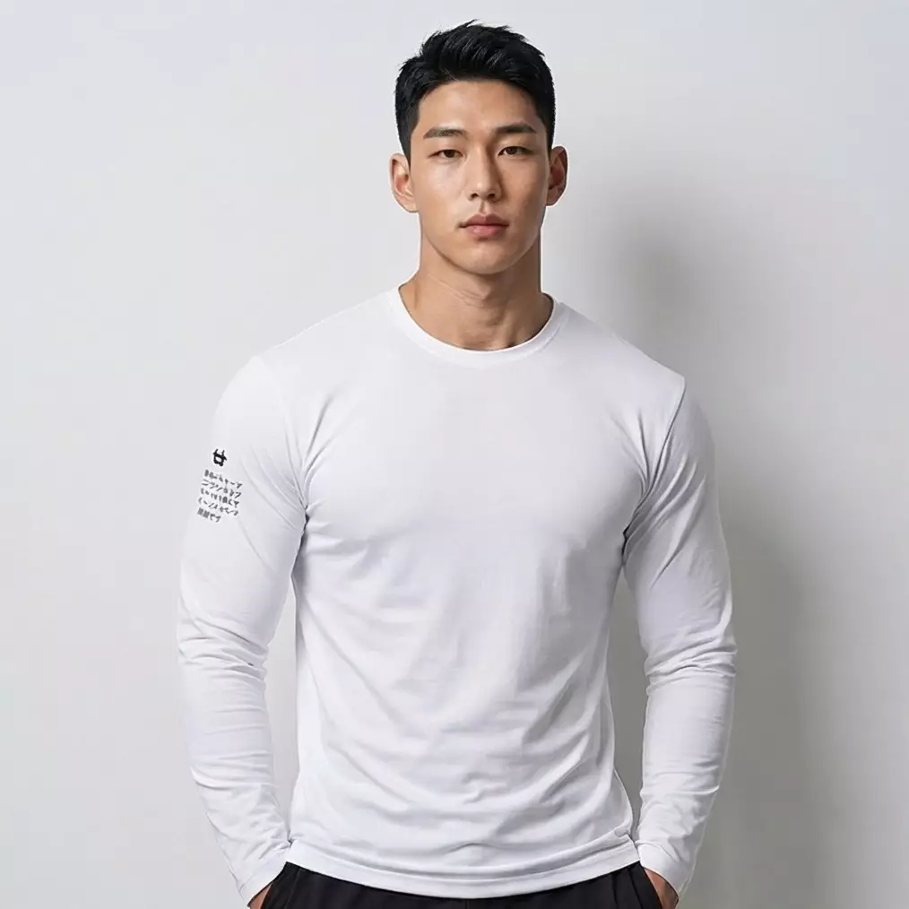 THIRDDAY Kaos Lengan Panjang Pria Logo Katakana Japanese Style - Long Sleeve T-Shirt Pria Putih Bahan Premium Instacool MTZ65
