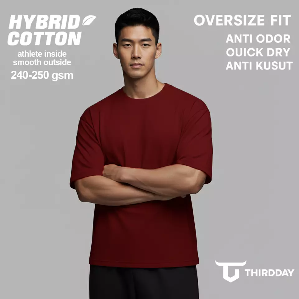 THIRDDAY Kaos Oversize Gym Tebal 250gsm Hybrid Cotton Polos Maroon MTY76