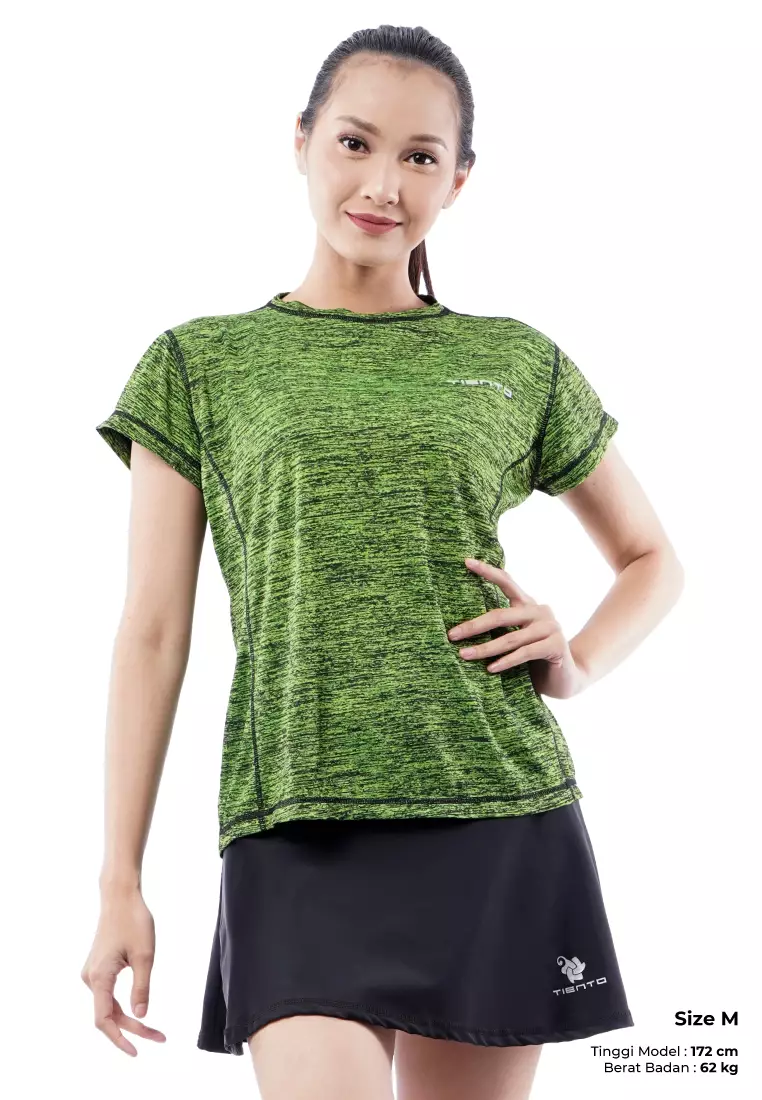 TientoTiento Baju Kaos Dry Fit Running Sport Women Pakaian Olahraga Gym Lari Senam Wanita Lengan Pendek Two Tone Green Stabilo269000.0099000.00
