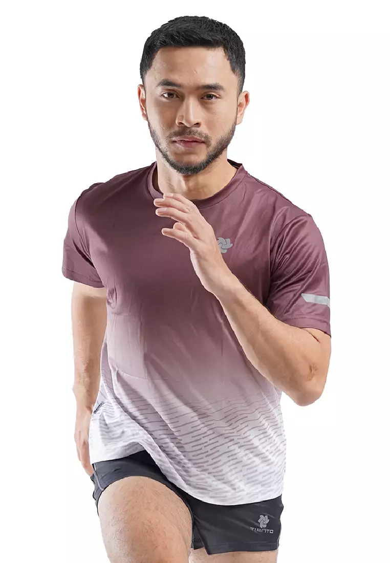 Tiento Baju Lari Ringan Jersey Running Anti UV Pria Dry Fit Lengan Pendek Airlite Mahogany