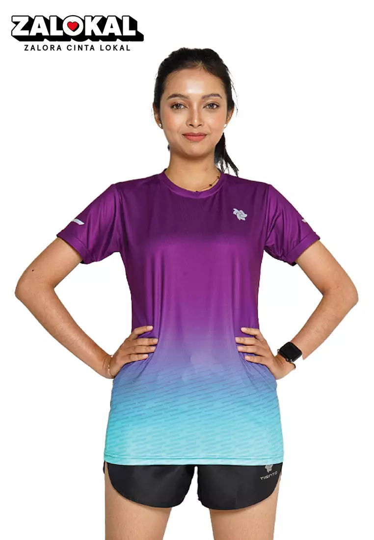 Tiento Baju Lari Ringan Jersey Running Anti UV Wanita Dry Fit Lengan Pendek Airlite Bluedemon