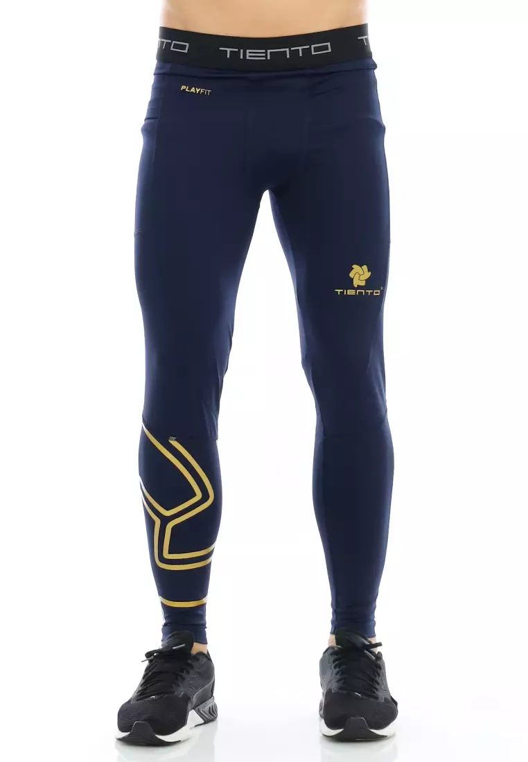 Tiento Baselayer Leging Celana Panjang Ketat Olahraga Pria Legging Sport Long Pants EXO Series Navy Gold Men