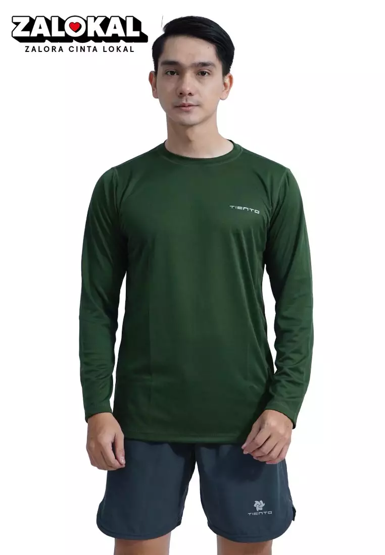 Tiento Kaos Running Dry Fit Lengan Panjang Baju Olahraga Pria Lari Gym Fitness Army
