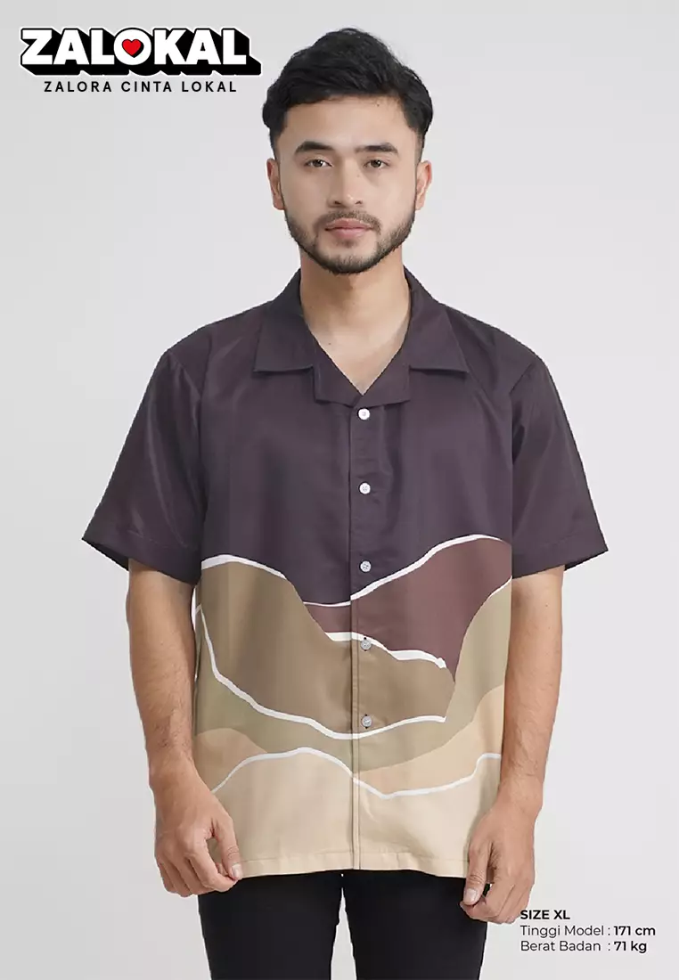 Tiento Kemeja Pakaian Pria Baju Kasual Atasan Lengan Pendek Motif Nature Skala