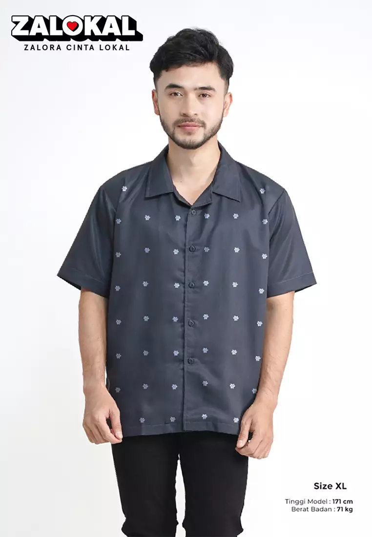Tiento Kemeja Pakaian Pria Baju Kasual Atasan Lengan Pendek Motif Simpel Eunoia