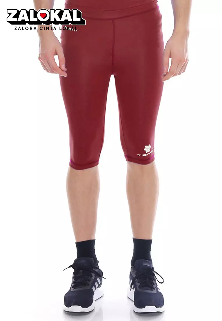 Tiento Man Compression Half Pants Maroon Celana Legging Leging Selutut Pria Olahraga Original