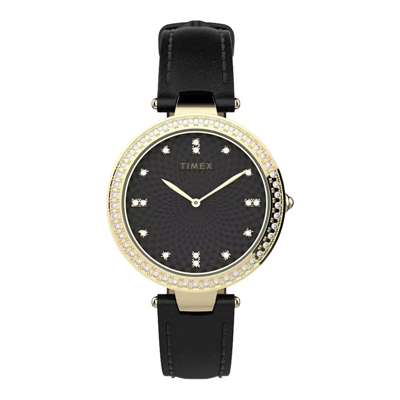 Jam Tangan Wanita Timex City Collection TW2V45100 Ladies Black Dial Black Leather Strap