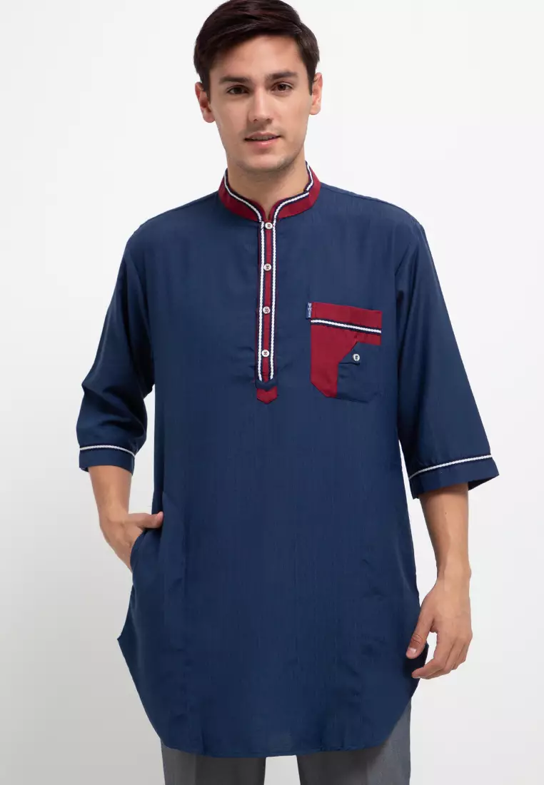 - Leher: Kerah Mandarin