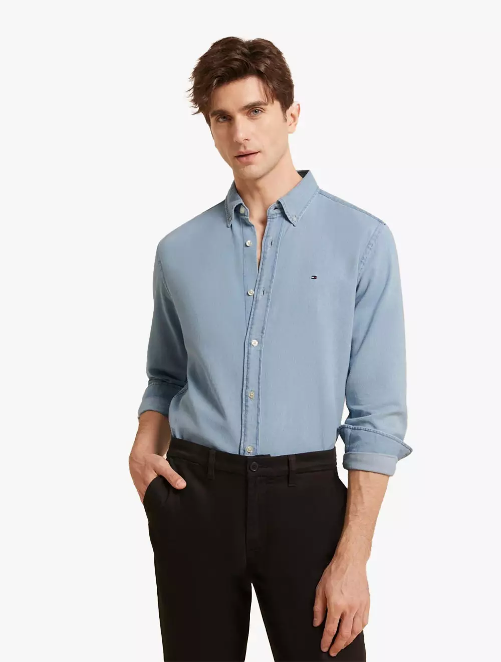 TOMMY HILFIGER - LIGHT DENIM LONG-SLEEVED SHIRT - Light Wash - blue