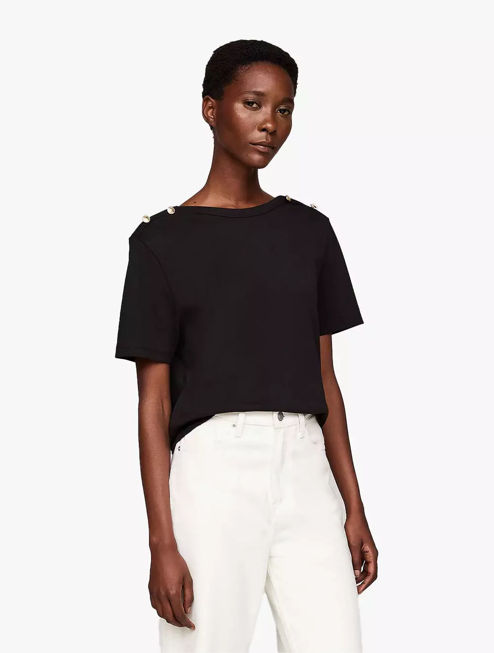 Tommy Hilfiger - Stripe Boat Neck Relaxed T-Shirt - Black