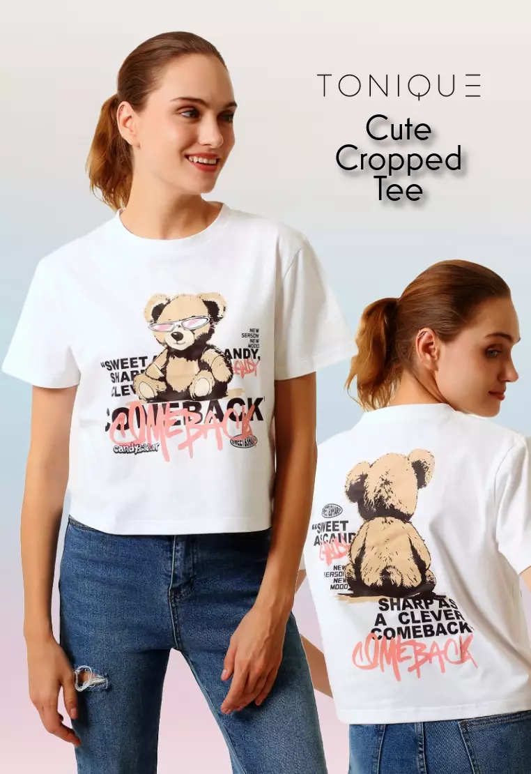 TONIQUE Kaos Crop Wanita Putih MOCCA Women's Cotton Graphic Cropped T-shirt White