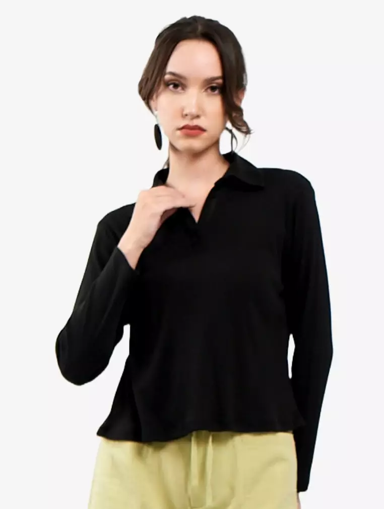 TONIQUE Kaos Wanita Katun Combed 24s Lengan Panjang KELLY Hitam