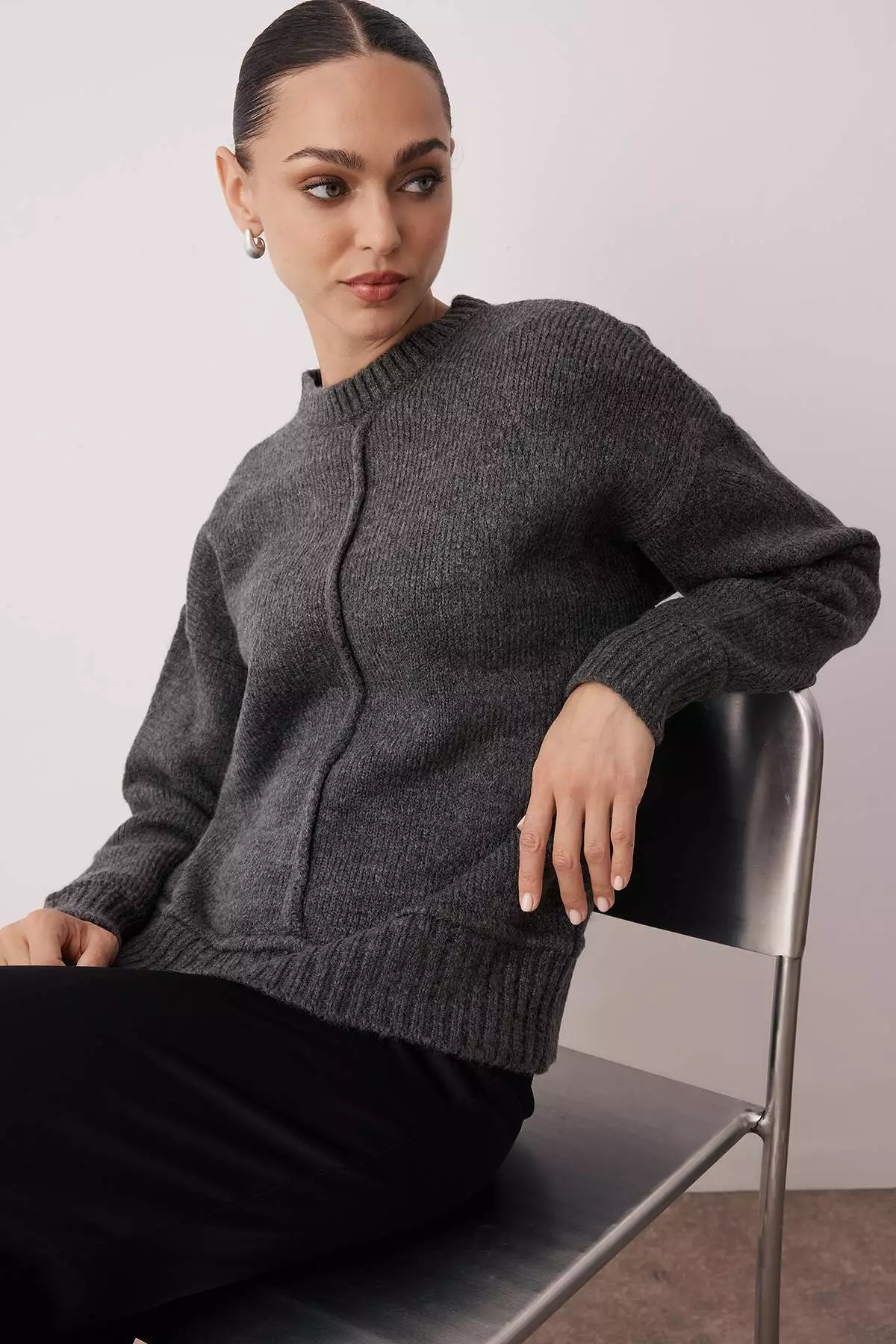 TrendyolAnthracite Soft Textured Wide Fit Stitch Detail Knitwear Sweater699000.00524250.00