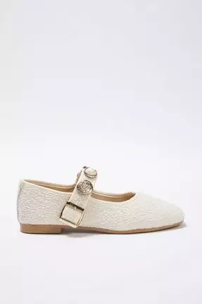 TrendyolBeige Buckle Accessory Detailed Round Toe Tweed Mary Jane Women's Flat Shoes Takss25Be00011679000.00577150.00