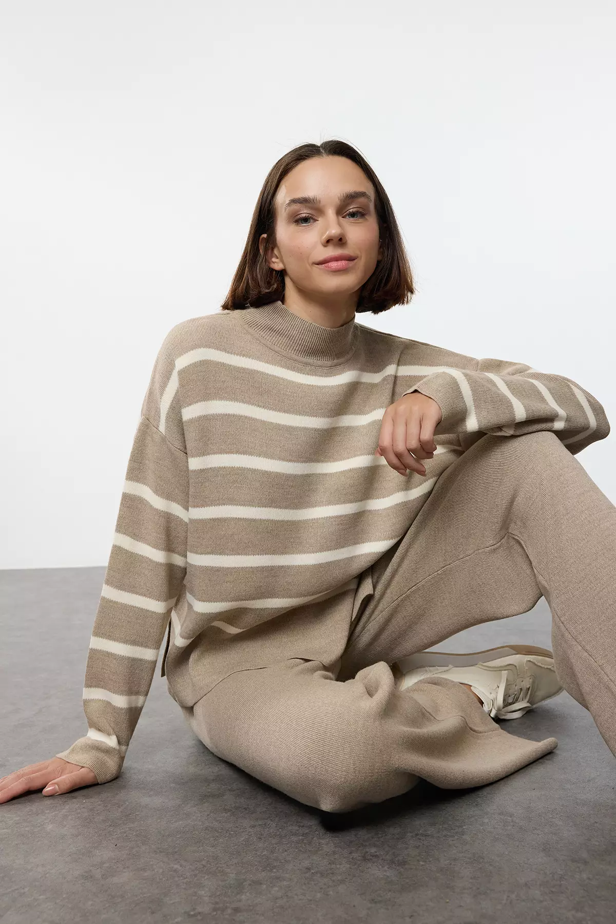 TrendyolBeige Striped Knitted Trousers Top-Bottom Set TWOAW24AU00045879000.00