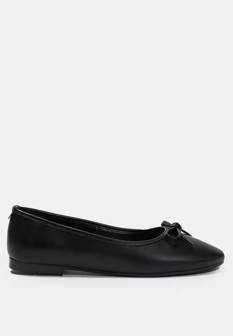 Black Bow Detailed Almond Toe Women's Ballerinas Takss25Be00002