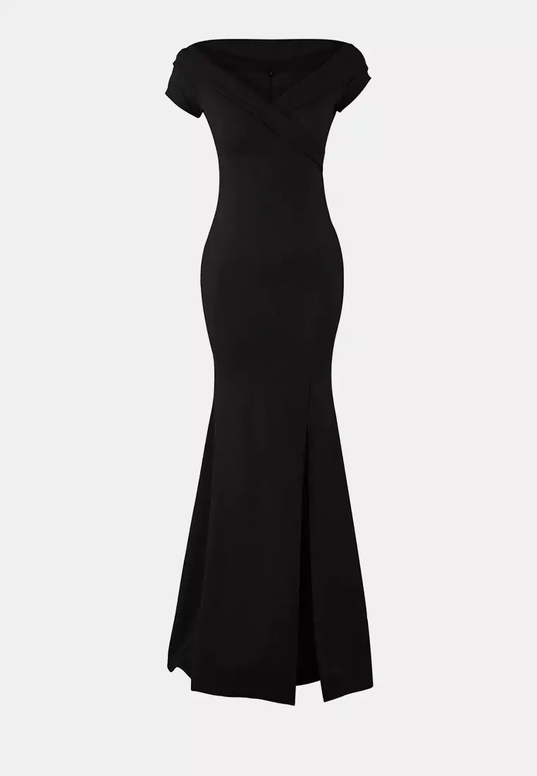 Black Carmen Collar Fish Cut Maxi Stylish Evening Dress