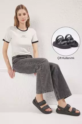 TrendyolBlack Double Band Light Sole Women Eva Sandals Slippers Takss25Sd00032229000.00
