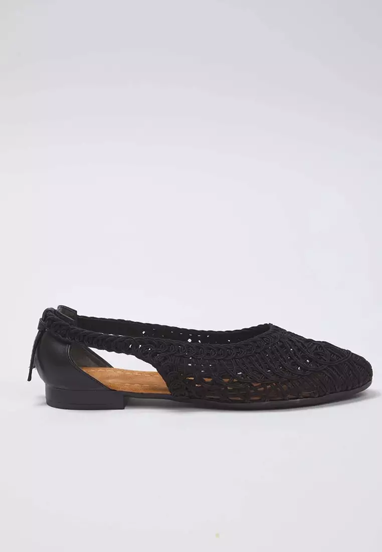 Black Knitted Patterned Almond Toe Women's Ballerina Ballet Takss25Be00027