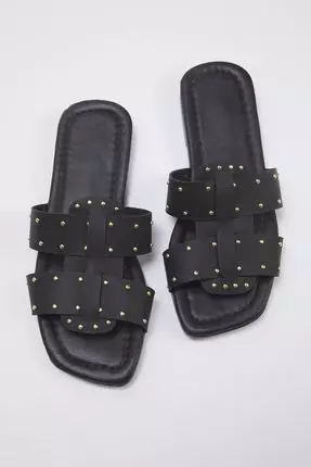 TrendyolBlack Rivet Double Banded Women's Stylish Slippers With Accessories Takss25Te00016399000.00