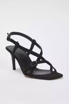 Black Suede Ankle Strap Square Toe Thin Heeled Women's Sandals Takss25To00018