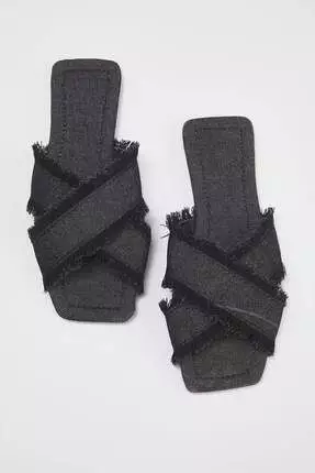 TrendyolBlack Tassel Detailed Denim Cross Strap Women's Slippers Takss25Te00043429000.00