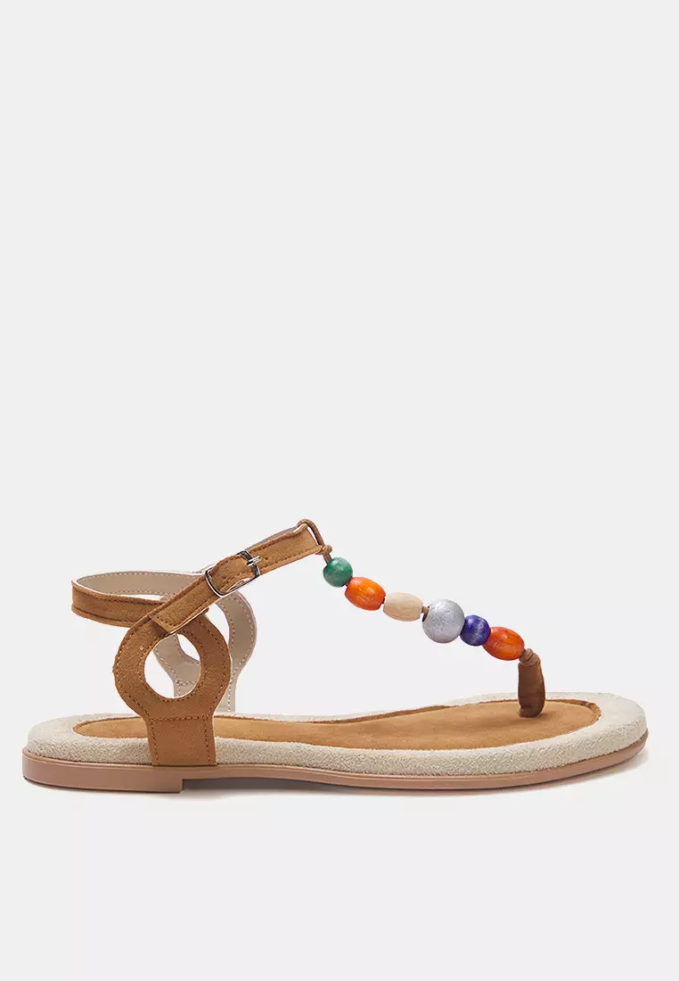 Brown Bead Detailed Women's Flip Flops Sandals Takss25Sd00029