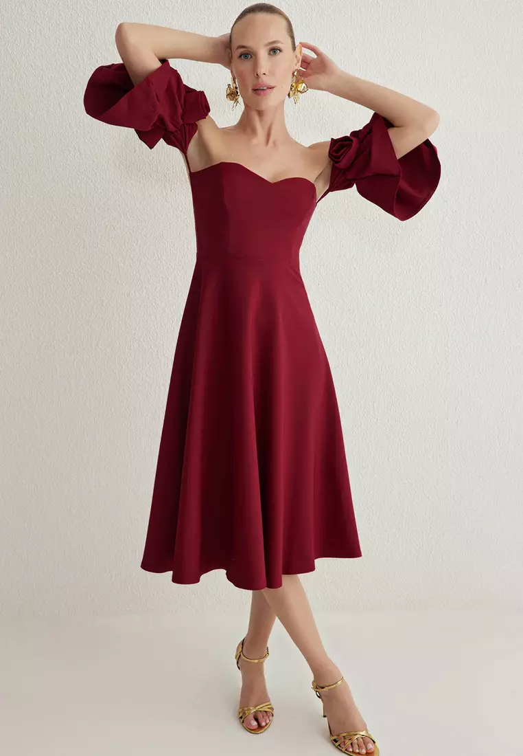TrendyolBurgundy A-Cut Rose Detailed Woven Chic Dress939000.00751200.00