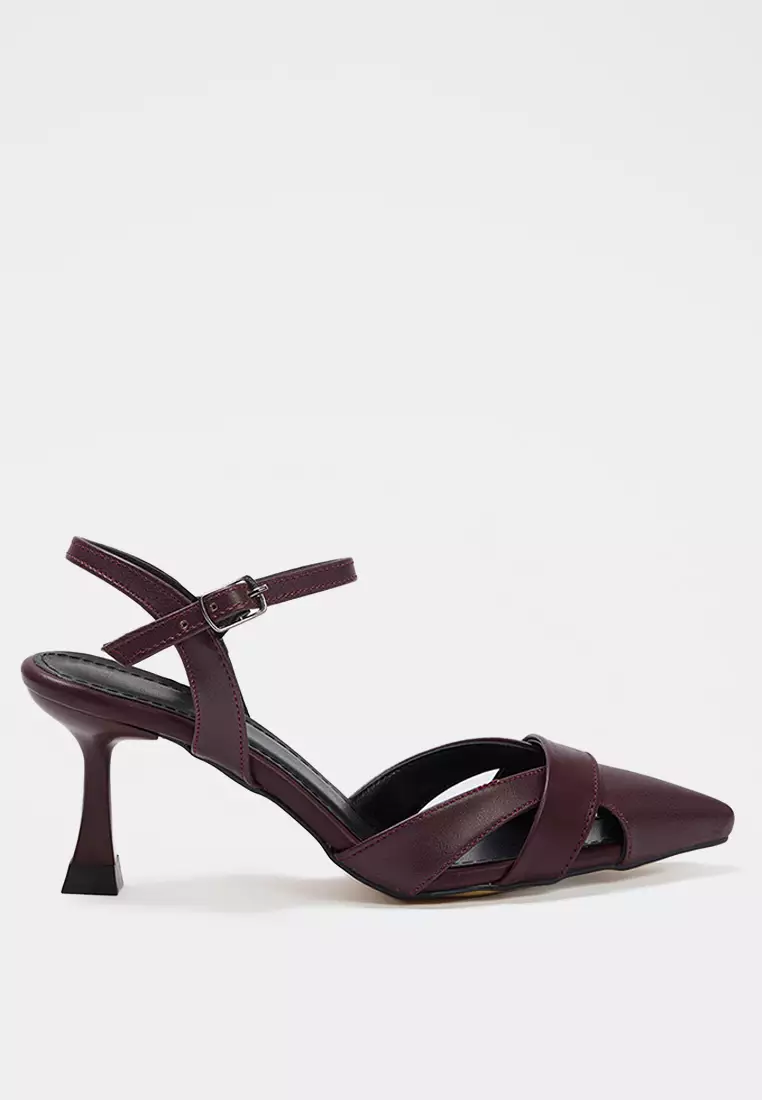 Burgundy Cut Out Detail Pointed Toe Women's Classic High-Heeled Shoes Takss25To00029