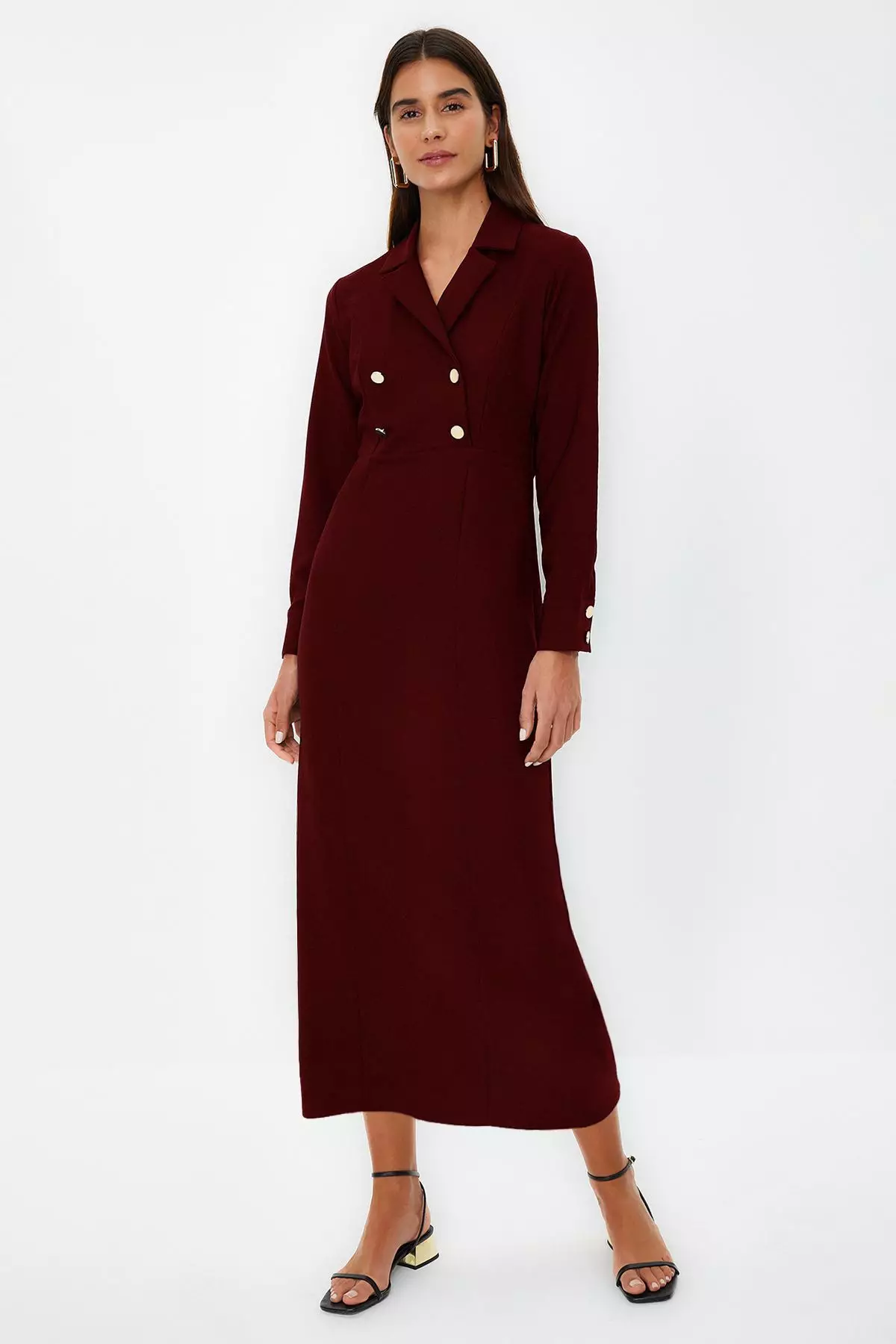 TrendyolBurgundy Double Breasted Collar With Gold Button Detail Woven Dress Tctss24Eb000201009000.00