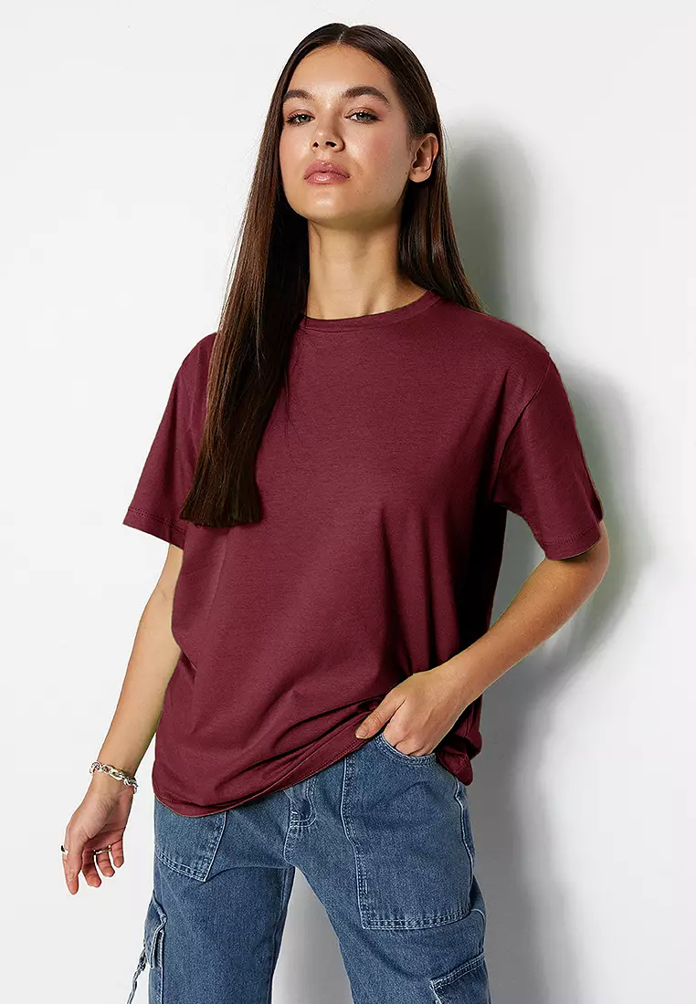 TrendyolCherry Rot Crew Neck Oversize/Wide Pattern Knitted T-Shirt229000.00